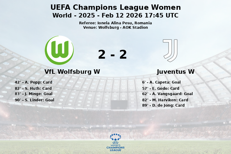 Wolfsburgo, 12 de febrero de 2026 – La Juventus Femenino logró una valiosa victoria en su visita al AOK Stadion, hogar del VfL Wolfsburgo, en el partido de ida de los octavos de final de la UEFA Champions League Femenina. A pesar de dominar la posesión con un 71%, el Wolfsburgo se vio sorprendido por la efectividad de la Juventus.