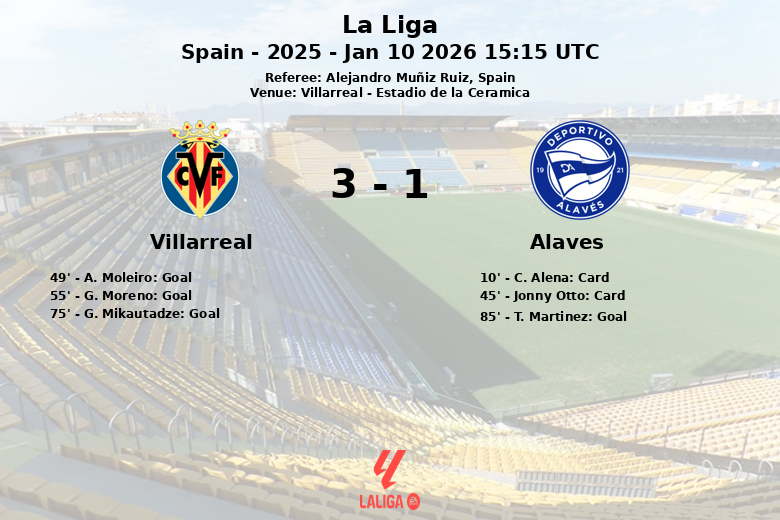 En el minuto 75, G. Mikautadze sentenció el partido con el tercer gol para el Villarreal. El Alavés, sin embargo, no se rindió y encontró el gol del honor en el minuto 85 gracias a T. Martínez.