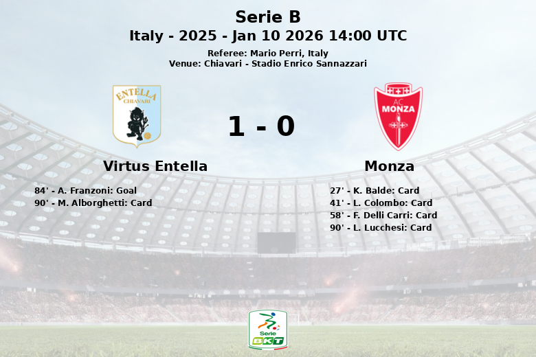 Virtus Entella vs Monza Jan 10 2026 14:00 UTC