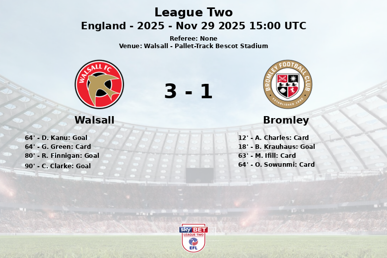 Walsall vs Bromley Nov 29 2025 15:00 UTC