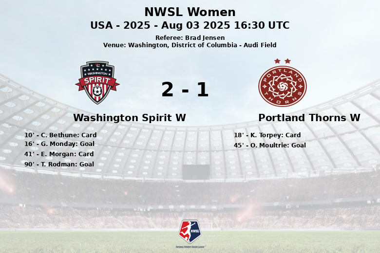 Washington, D.C. – El Washington Spirit aseguró una valiosa victoria en casa frente al Portland Thorns en un partido cargado de intensidad y emoción. El encuentro, disputado en el Audi Field, culminó con un marcador favorable a las locales.