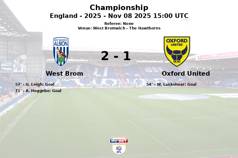 West Bromwich, Inglaterra – En un encuentro correspondiente a la jornada 15 de la Championship, el West Brom se impuso al Oxford United en The Hawthorns. A pesar de una posesión de balón claramente favorable al West Brom (63% frente al 37% de Oxford), el partido fue más equilibrado en el marcador de lo que las estadísticas sugieren.