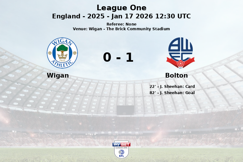 El Wigan, con tan solo un corner a favor y sin disparos a puerta, no pudo capitalizar sus escasas oportunidades, mientras que el Bolton, aunque con una efectividad de tiros a puerta relativamente baja (4 de 16), supo mantener el control del juego y, finalmente, encontrar el camino al gol. El partido finalizó con una victoria sufrida para el Bolton, consolidando su posición en la tabla. El encuentro se jugó en el marco de la temporada 2025 de la League One.