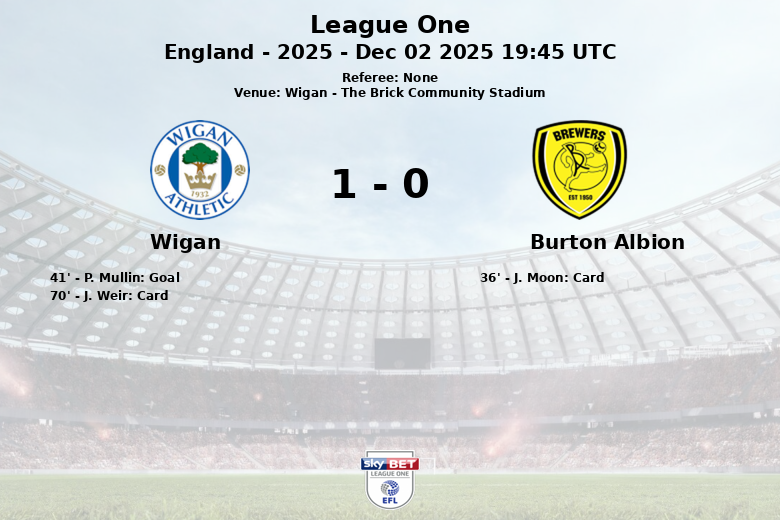 En un partido disputado en The Brick Community Stadium de Wigan, el equipo local se llevó la victoria ante el Burton Albion. El Wigan dominó la posesión del balón con un 55%, mientras que el Burton Albion mostró mayor agresividad en ataque, con 10 tiros en total, aunque solo 2 de ellos encontraron la portería. La diferencia en el marcador llegó gracias a un gol de P. Mullin al minuto 41, con asistencia de C. Saydee. El partido se caracterizó por una alta intensidad, reflejada en el número de faltas cometidas por ambos equipos: 8 del Wigan y 9 del Burton Albion. El árbitro mostró tarjetas amarillas a J. Moon del Burton Albion y a J. Weir del Wigan. El Wigan aprovechó mejor sus oportunidades, llevándose los tres puntos en este encuentro de la League One.