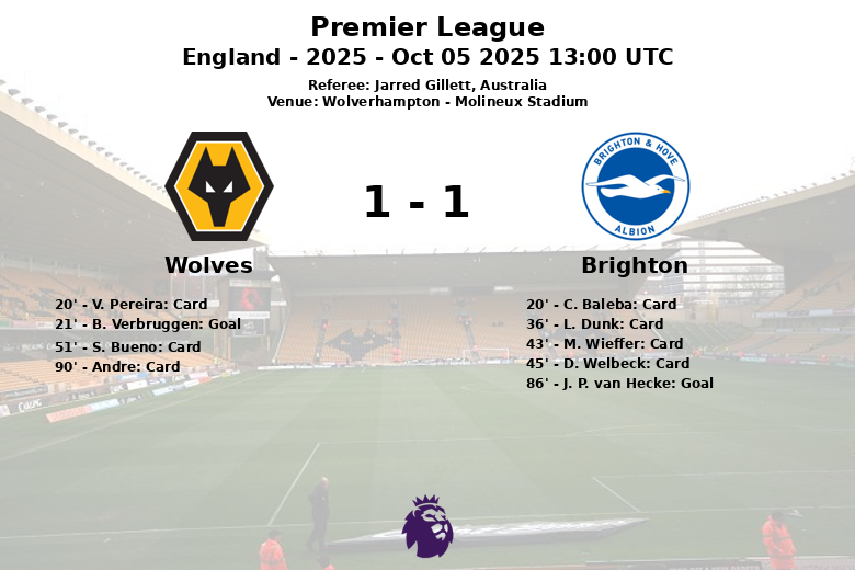 En un encuentro cargado de tensión disputado en el Molineux Stadium de Wolverhampton, Brighton se llevó la victoria ante un Wolves que jugó gran parte del partido con un hombre menos. El partido, válido por la séptima jornada de la Premier League, estuvo marcado por las numerosas tarjetas y un desafortunado autogol que abrió el marcador.