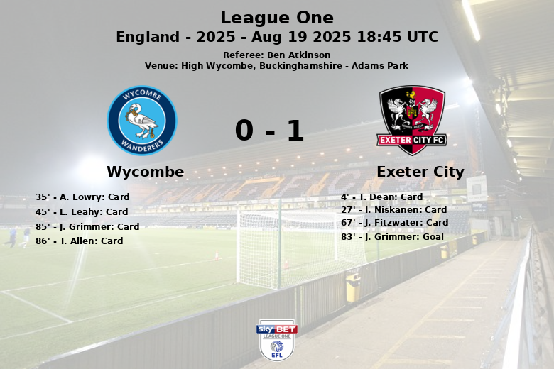 Wycombe vs Exeter City Aug 19 2025 18:45 UTC