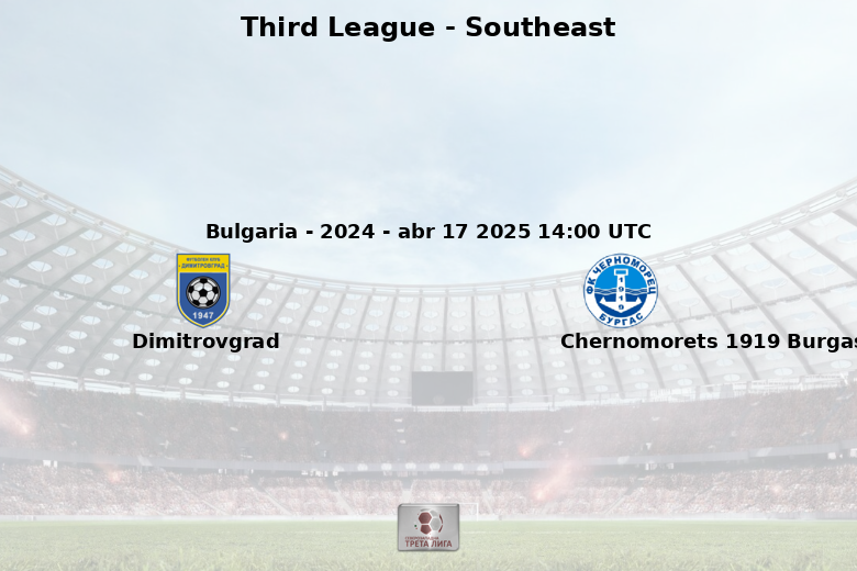 | oct 09 2024 | Chernomorets 1919 Burgas | 4 – 0 | Dimitrovgrad | ||