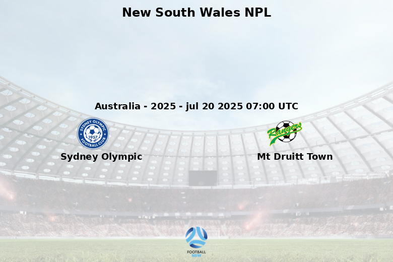 | jul 22 2023 | Sydney Olympic | 3 – 3 | Mt Druitt Town | ||
