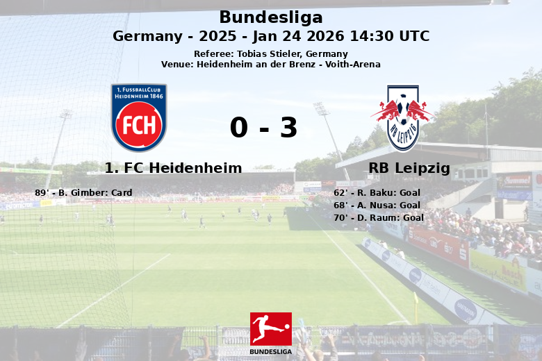 Heidenheim, bien qu’ayant tenté de réagir avec 7 tirs (2 cadrés et 5 non cadrés), n’a pas réussi à concrétiser ses opportunités. Leipzig, de son côté, a été plus efficace, avec 11 tirs (7 cadrés et 1 non cadré). Le match a également été caractérisé par un jeu physique, avec 10 fautes commises par Heidenheim et 9 par Leipzig. B. Gimber de Heidenheim a reçu un carton jaune à la 89e minute. Leipzig n’a obtenu aucun corner pendant tout le match.