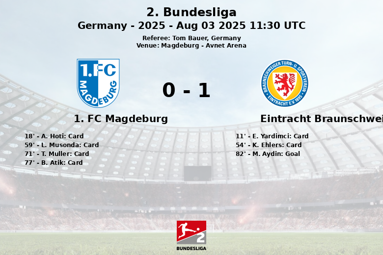 1. FC Magdeburg vs Eintracht Braunschweig Aug 03 2025 11:30 UTC