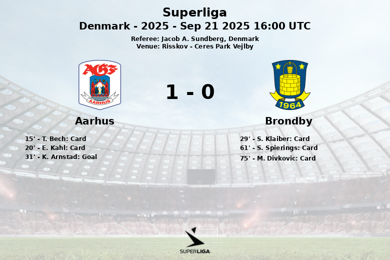 Risskov, Danemark – Lors d’un match correspondant à la neuvième journée de la Superliga danoise, Aarhus s’est imposé face à Brondby au Ceres Park Vejlby. La rencontre, arbitrée par Jacob A. Sundberg, a été tendue et marquée par de nombreux avertissements.