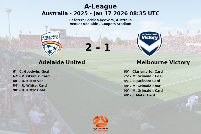 Adélaïde, Australie – Dans un match plein d’émotions et de controverse, Adelaide United et Melbourne Victory ont fait match nul 2-1 au Coopers Stadium. Le match, comptant pour la 13e journée de la A-League, a été marqué par l’intensité et les décisions arbitrales revues par la VAR.
