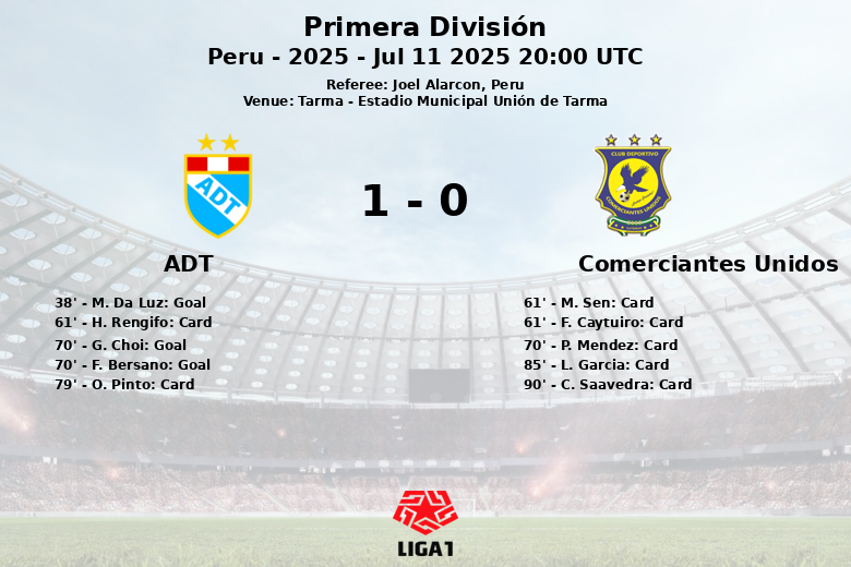 La seconde mi-temps a été encore plus agitée. À la 61e minute, une double mise en garde a entraîné l’expulsion de H. Rengifo de l’ADT et de F. Caytuiro de Comerciantes Unidos, laissant les deux équipes à dix joueurs. G. Choi a élargi l’avance de l’ADT à la 70e minute avec un but. Plus tard, l’ADT a eu un autre penalty en sa faveur ; cependant, F. Bersano a raté l’occasion d’augmenter l’avance. Dans les dernières minutes, Comerciantes Unidos a subi l’expulsion de L. Garcia à la 85e minute et de C. Saavedra dans le temps additionnel, ce qui a abouti à un match où la discipline a été un facteur clé.