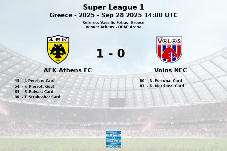 L’AEK Athènes, avec sa plus grande possession et un but en sa faveur, a su gérer le rythme du match et assurer une précieuse victoire à domicile. Bien que Volos NFC ait lutté pour trouver l’égalisation, leurs maigres occasions de but n’ont pas suffi à inquiéter l’équipe locale. Le match s’est terminé avec AEK Athènes un, Volos NFC zéro.