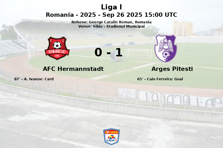 Le seul but du match a été marqué à la 65e minute par Caio Ferreira, qui a profité pour marquer le seul but de la rencontre. L’AFC Hermannstadt, bien qu’ayant généré plus d’occasions de but (8 tirs contre 6 pour l’adversaire), n’a réussi à diriger qu’un seul tir au but. De son côté, Arges Pitesti a été plus précis, plaçant 5 de ses 6 tirs cadrés. Le match a été marqué par une forte intensité de fautes, avec 17 commises par Arges Pitesti et 11 par AFC Hermannstadt. L’arbitre a montré un carton jaune au joueur Ivanov d’Hermannstadt à la 87e minute. Cette victoire permet à Arges Pitesti d’ajouter des points précieux dans la Liga I roumaine.