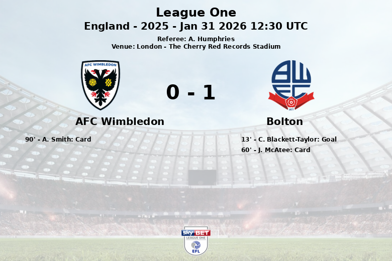 Londres, Angleterre – Dans un match correspondant à la 30e journée de League One, Bolton Wanderers a battu AFC Wimbledon au The Cherry Red Records Stadium. Le match, arbitré par A. Humphries, a été caractérisé par un jeu disputé et tactique.