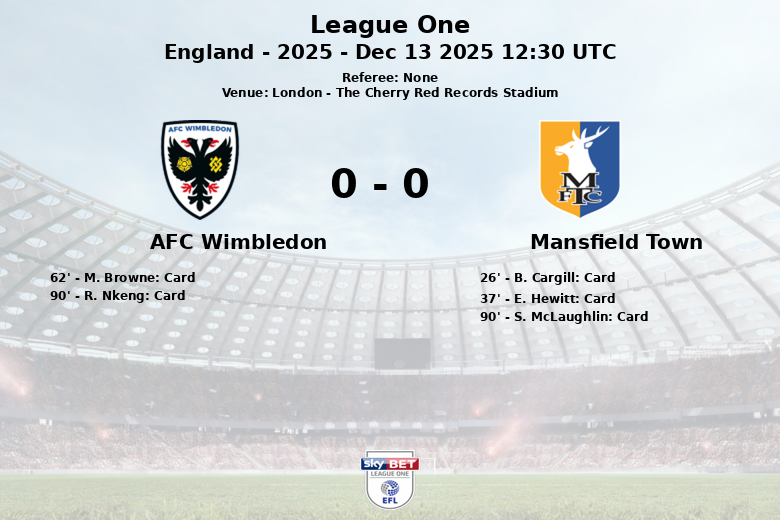 Londres, Angleterre – Lors d’un match comptant pour la 20e journée de League One, l’AFC Wimbledon et Mansfield Town n’ont pas réussi à briser l’égalité à zéro au The Cherry Red Records Stadium. Le match, disputé le 13 décembre 2025, a été caractérisé par l’intensité et la lutte au milieu de terrain.