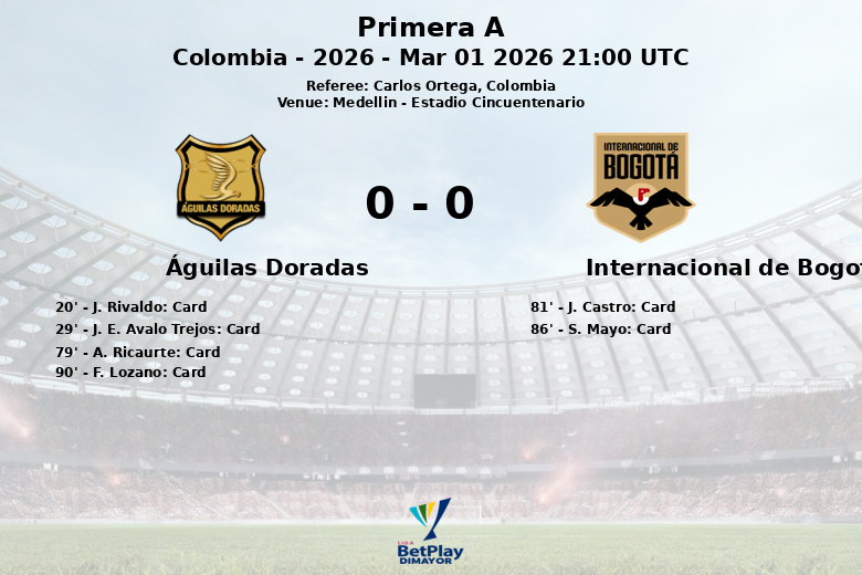 La bataille sur le terrain s’est traduite par un nombre élevé de fautes, 13 pour Águilas Doradas et 14 pour Internacional. L’arbitre a été contraint de montrer plusieurs cartons jaunes, Águilas Doradas recevant plus d’avertissements (4) par rapport à Internacional de Bogotá (2). Le match s’est terminé sans aucune expulsion pour l’une ou l’autre équipe. La tension élevée du match a entraîné de nombreux cartons jaunes, J. Rivaldo (20′), J. E. Avalo Trejos (29′), A. Ricaurte (79′) et F. Lozano (90′) étant avertis pour Águilas Doradas, tandis que J. Castro (81′) et S. Mayo (86′) ont été avertis pour Internacional de Bogotá.
