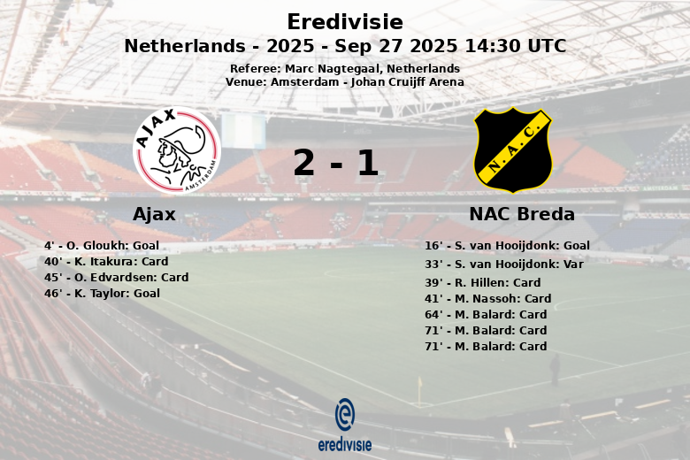 Ajax vs NAC Breda Sep 27 2025 14:30 UTC