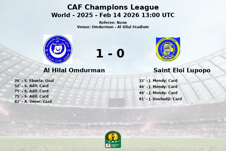 Al Hilal Omdurman vs Saint Eloi Lupopo Feb 14 2026 13:00 UTC
