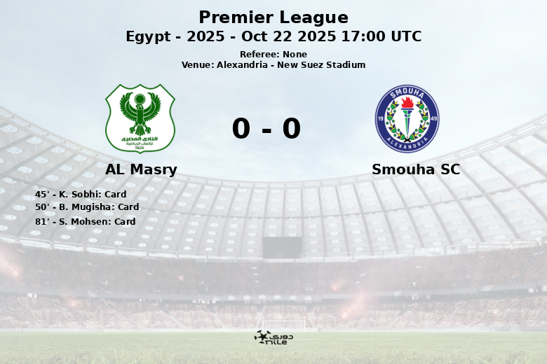 Alexandrie, Égypte – Dans un match disputé au New Suez Stadium, AL Masry et Smouha SC ont fait match nul et vierge lors de la onzième journée de la Premier League égyptienne. Le match, caractérisé par l’intensité et la lutte au milieu de terrain, s’est terminé par un partage des points.