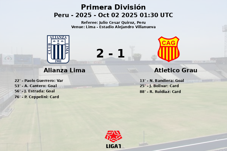 Le match n’a pas été exempt de controverses. Alianza Lima s’est vu refuser un but de Paolo Guerrero pour hors-jeu à la 22e minute, une décision revue par le VAR. L’intensité du jeu s’est également traduite par des avertissements, avec J. Bolívar de l’Atlético Grau recevant un carton jaune à la 25e minute, et P. Ceppelini d’Alianza Lima à la 76e minute. L’arbitrage de Julio Cesar Quiroz a été scruté à plusieurs reprises au cours du match.