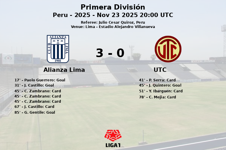 Alianza Lima vs UTC Nov 23 2025 20:00 UTC