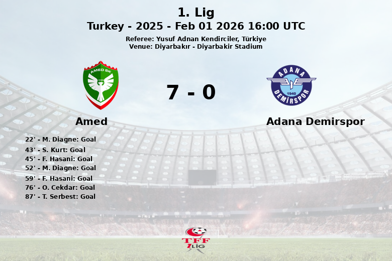 Amed vs Adana Demirspor Feb 01 2026 16:00 UTC