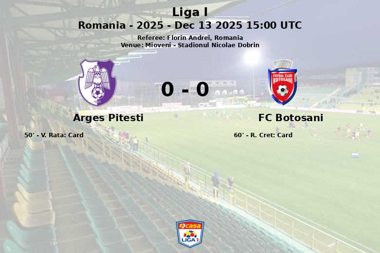 Mioveni, Roumanie – Un match disputé au Stadionul Nicolae Dobrin entre Arges Pitesti et FC Botosani s’est terminé par un match nul, reflétant l’intensité et la bataille au milieu de terrain. L’arbitre Florin Andrei a supervisé le match correspondant à la 20e journée de la Liga I roumaine lors de sa saison 2025.