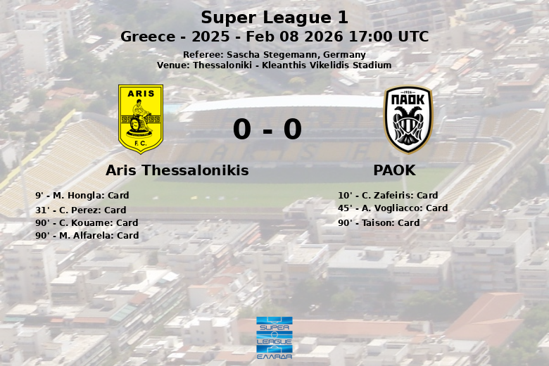 La discipline a été un facteur clé, avec un total de 5 cartons jaunes attribués à Aris Thessalonikis et 2 à PAOK. L’arbitre Sascha Stegemann a dû faire face à un match très disputé dès le début, comme en témoigne le carton jaune précoce pour M. Hongla d’Aris à la 9e minute et pour C. Zafeiris de PAOK à la 10e minute. Le match s’est poursuivi avec plusieurs avertissements tout au long des 90 minutes, reflétant l’intensité du classique. Malgré les efforts des deux équipes pour briser l’égalité, le score est resté inchangé jusqu’au coup de sifflet final.
