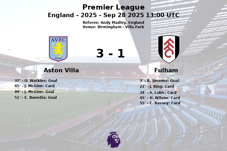 Aston Villa vs Fulham Sep 28 2025 13:00 UTC