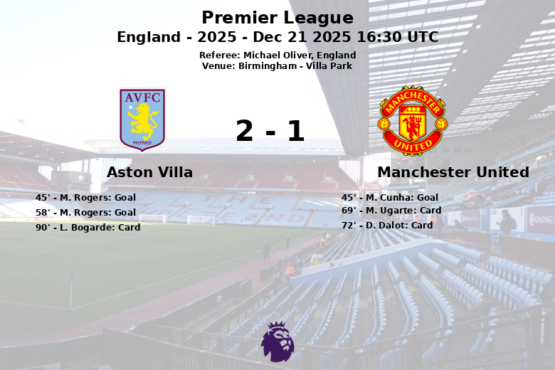 La première mi-temps a été marquée par un échange de buts juste avant la pause. M. Cunha a donné l’avantage à Manchester United à la 45e minute grâce à une action qui s’est concrétisée grâce à la passe décisive de P. Dorgu. La joie fut de courte durée pour les « Red Devils », car immédiatement après, M. Rogers d’Aston Villa a égalisé le score sur une passe décisive de J. McGinn.
