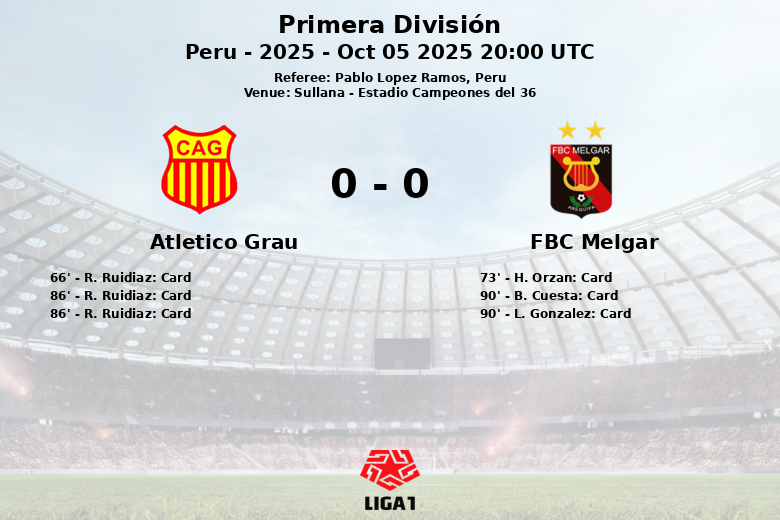 Les deux équipes ont eu du mal à concrétiser leurs attaques, Atlético Grau enregistrant 5 tirs (3 cadrés) et FBC Melgar également avec 5 tirs, mais un seul cadré. La discipline a été un facteur clé, avec un total de 22 fautes commises par les deux équipes. L’arbitre Pablo Lopez Ramos n’a pas hésité à montrer des cartons, sanctionnant plusieurs joueurs. Le match s’est terminé par deux expulsions, une pour chaque équipe, soulignant la tension et la lutte pour chaque ballon jusqu’à la dernière minute.