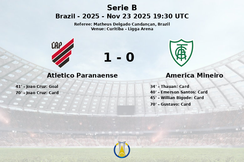 Curitiba, Brésil – Lors d’un match comptant pour la 38e journée de la Serie B 2025, l’Atlético Paranaense a remporté une victoire 1 à 0 contre l’América Mineiro au Ligga Arena. Le match, arbitré par Matheus Delgado Candançan, a été marqué par un jeu disputé au milieu de terrain.