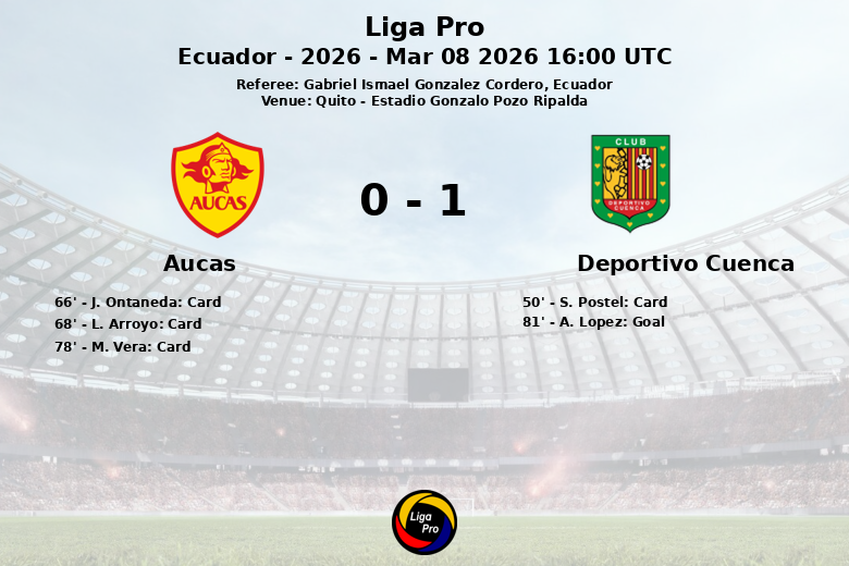 Aucas vs Deportivo Cuenca Mar 08 2026 16:00 UTC
