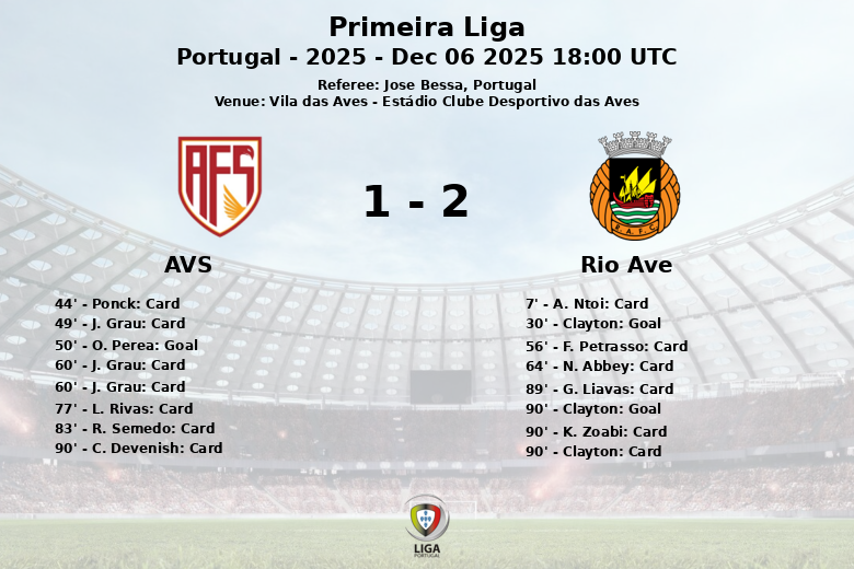 Clayton a ouvert le score pour Rio Ave à la 30e minute, suite à une passe décisive d’Andre Luiz, donnant l’avantage aux locaux. AVS a réagi au début de la seconde période, avec un but de O. Perea à la 50e minute, égalisant le score. Le match est devenu encore plus tendu avec une série de cartons jaunes distribués aux deux équipes, culminant avec l’expulsion de J. Grau d’AVS à la 60e minute, laissant son équipe à dix.