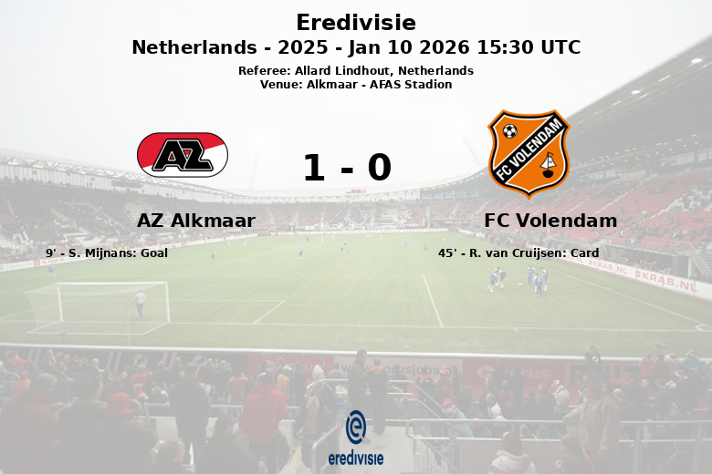 Alkmaar, Pays-Bas – Lors d’une rencontre correspondant à la 18e journée d’Eredivisie, l’AZ Alkmaar a remporté une victoire sur le FC Volendam à l’AFAS Stadion. Le seul but du match est intervenu tôt, à la 9e minute, grâce à S. Mijnans.