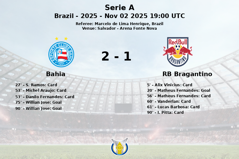 L’égalisation est intervenue à la 75e minute, lorsque Willian Jose, sur une passe décisive de Luciano Juba, a envoyé le ballon au fond des filets. Le même Willian Jose scellerait la victoire de Bahia à la 90e minute, grâce à une passe décisive de Tiago.