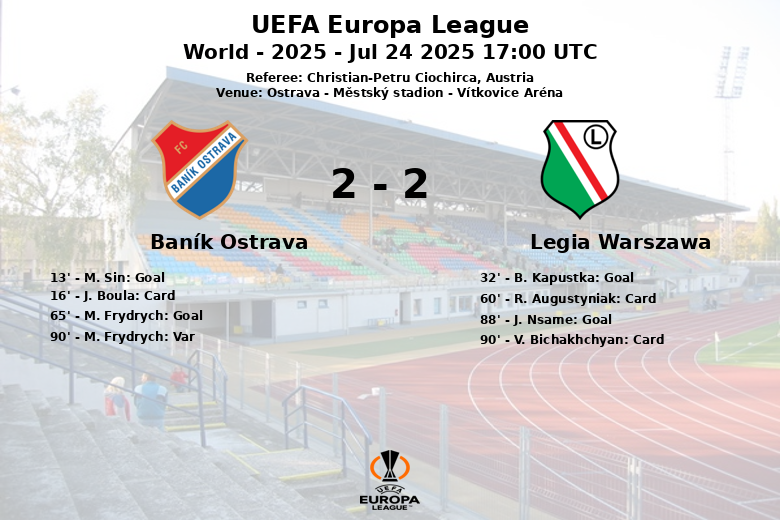 Baník Ostrava vs Legia Warszawa Jul 24 2025 17:00 UTC