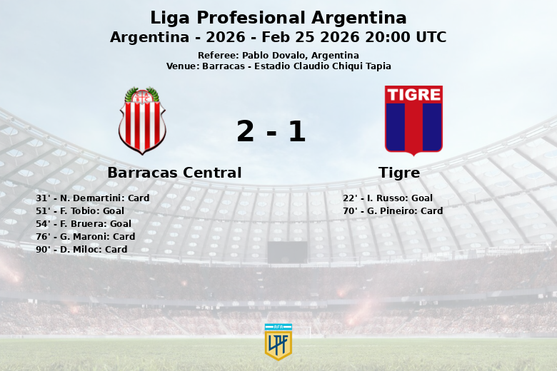 Barracas Central vs Tigre Feb 25 2026 20:00 UTC