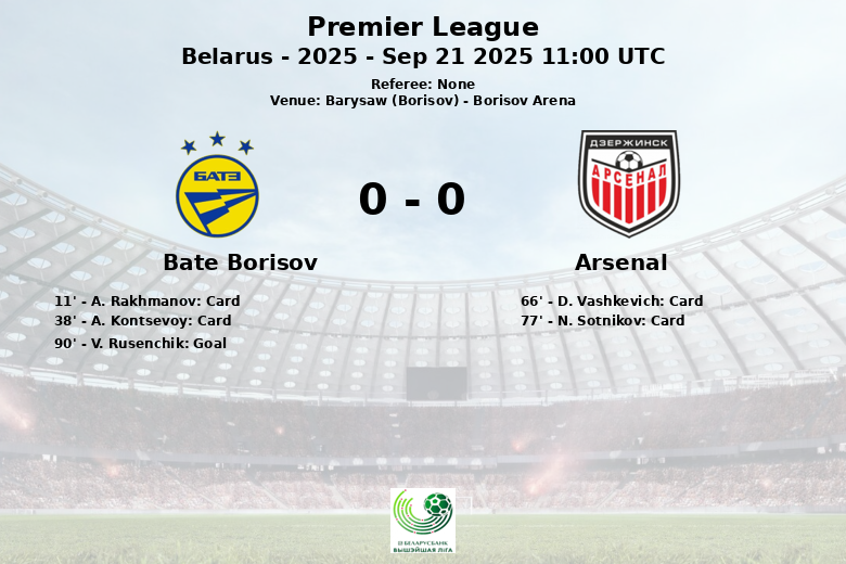 Barysaw (Borisov), Biélorussie – Dans un match disputé à la Borisov Arena, BATE Borisov et Arsenal n’ont pas réussi à rompre l’égalité, le match étant marqué par l’intensité et la discipline tactique. Le match, correspondant à la 22e journée de la Premier League biélorusse 2025, s’est terminé par un score qui reflète la parité observée sur le terrain.