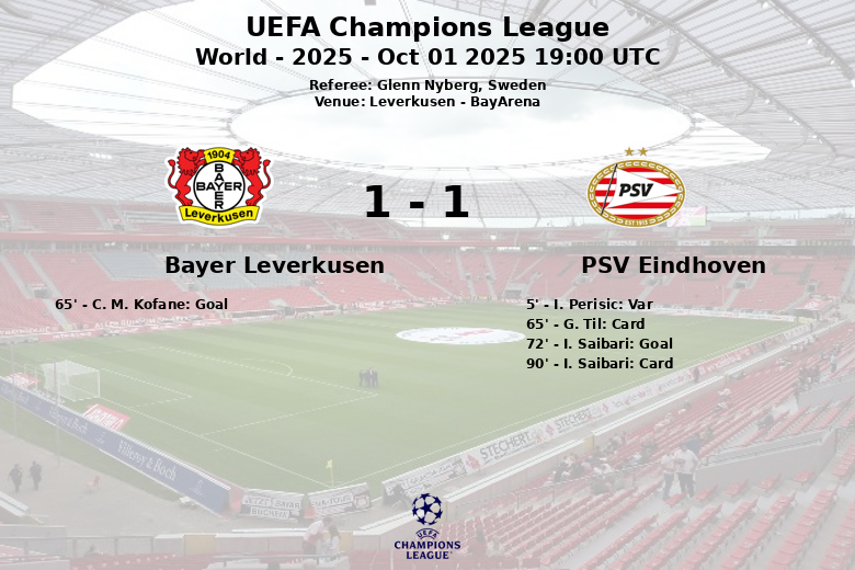 Cependant, la joie de Leverkusen fut de courte durée. À peine sept minutes plus tard, I. Saibari a égalisé pour le PSV Eindhoven avec un but assisté par G. Til, qui avait été averti plus tôt. Malgré les tentatives des deux équipes, le score est resté inchangé.