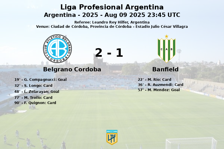 Le match a commencé avec un Belgrano dominant qui a réussi à ouvrir le score à la 19e minute avec un but de G. Compagnucci, sur une passe de N. Fernandez. Belgrano a accru son avance à la 48e minute, grâce à un but de L. Zelarayan, sur une passe de F. Jara. Cependant, Banfield a réagi et a réduit le score à la 57e minute avec un but de M. Mendez, sur une passe de G. Rios, rendant le match passionnant.
