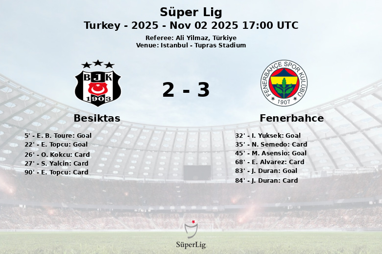 En seconde période, malgré son infériorité numérique, Besiktas s’est battu pour maintenir le match nul. Cependant, J. Duran a donné l’avantage à Fenerbahce à la 83e minute. Le score final était de 3-3.