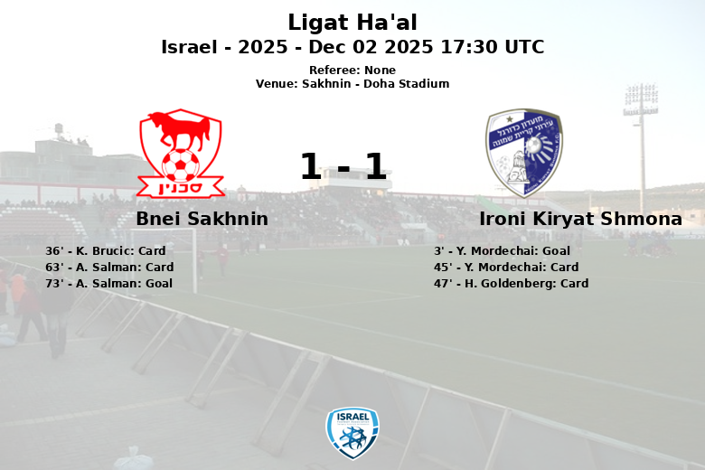 Sakhnin, Israël – Un match disputé au Doha Stadium s’est terminé par un match nul, reflétant l’intensité sur le terrain. Ironi Kiryat Shmona a pris une avance rapide à la 3ème minute avec un but de Y. Mordechai, assisté par A. Ugarriza. Cependant, Bnei Sakhnin n’a pas abandonné et s’est battu pour égaliser. La première mi-temps a été caractérisée par un jeu physique, avec un carton jaune pour K. Brucic de Bnei Sakhnin à la 36ème minute, suivi d’un avertissement pour Y. Mordechai d’Ironi Kiryat Shmona juste avant la mi-temps.