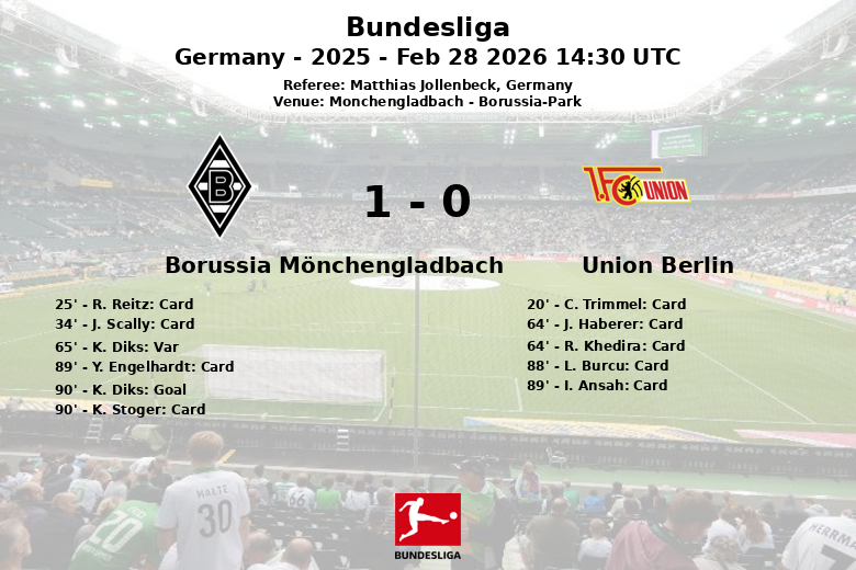 Le match a été marqué par les avertissements, avec cinq cartons jaunes pour l’Union Berlin et trois pour le Borussia Mönchengladbach. Un but du Borussia Mönchengladbach a été annulé par la VAR en raison d’un hors-jeu. À la fin du match, dans le temps additionnel, le Borussia Mönchengladbach a marqué un penalty.