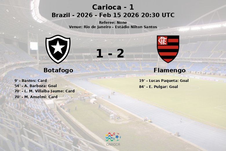 Alors qu’il semblait que le match nul serait définitif, E. Pulgar a marqué un but pour Flamengo à la 84e minute. Au final, le match s’est terminé sur un score de 2 à 1 en faveur de Flamengo. Le match, disputé dans le cadre des quarts de finale du Carioca 1 à l’Estádio Nilton Santos, a tenu les fans en haleine.