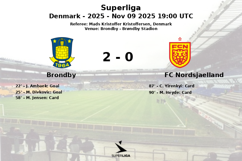 Brøndby, Danemark – Dans un match électrisant disputé au Brøndby Stadion, Brøndby a triomphé de FC Nordsjælland grâce à une performance solide. Le match, comptant pour la 15e journée de la Superliga danoise, saison 2025, a été arbitré par Mads Kristoffer Kristoffersen.