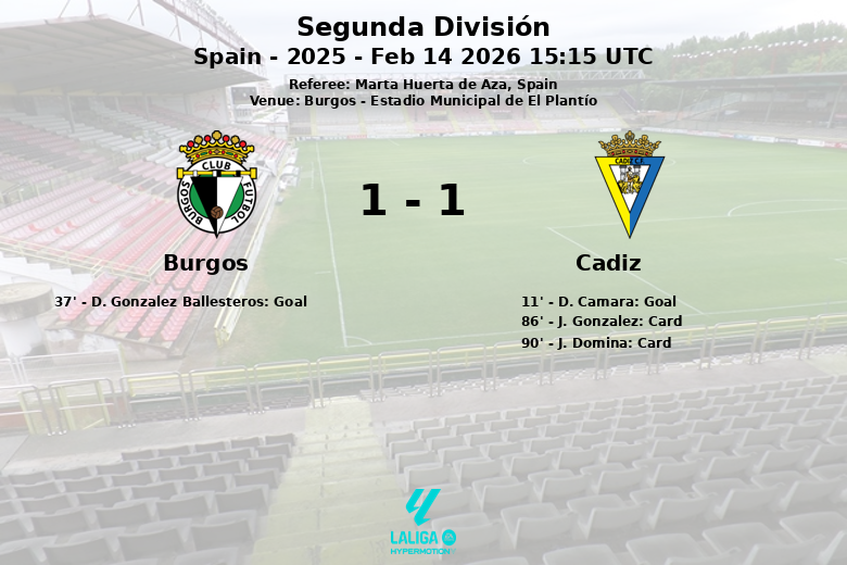 Burgos vs Cadiz Feb 14 2026 15:15 UTC