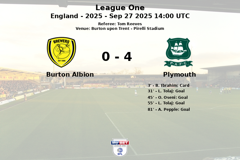 En seconde période, L. Tolaj a de nouveau marqué à la 55e minute, augmentant l’avantage de Plymouth. Malgré les efforts de Burton Albion, Plymouth a scellé la victoire avec un but de A. Pepple à la 81e minute, sur une passe décisive de B. Mumba. Le match s’est terminé par une nette victoire pour Plymouth Argyle.
